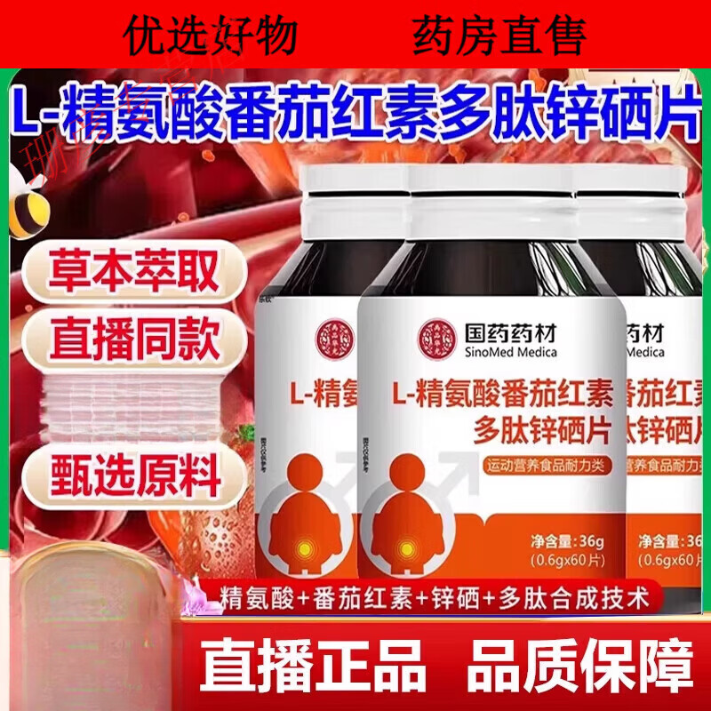 通用【药房直售】药材L-精氨酸番茄红素多肽锌硒片萃取1xb 【完整周期装】拍1发3_到手3瓶 36g*3瓶