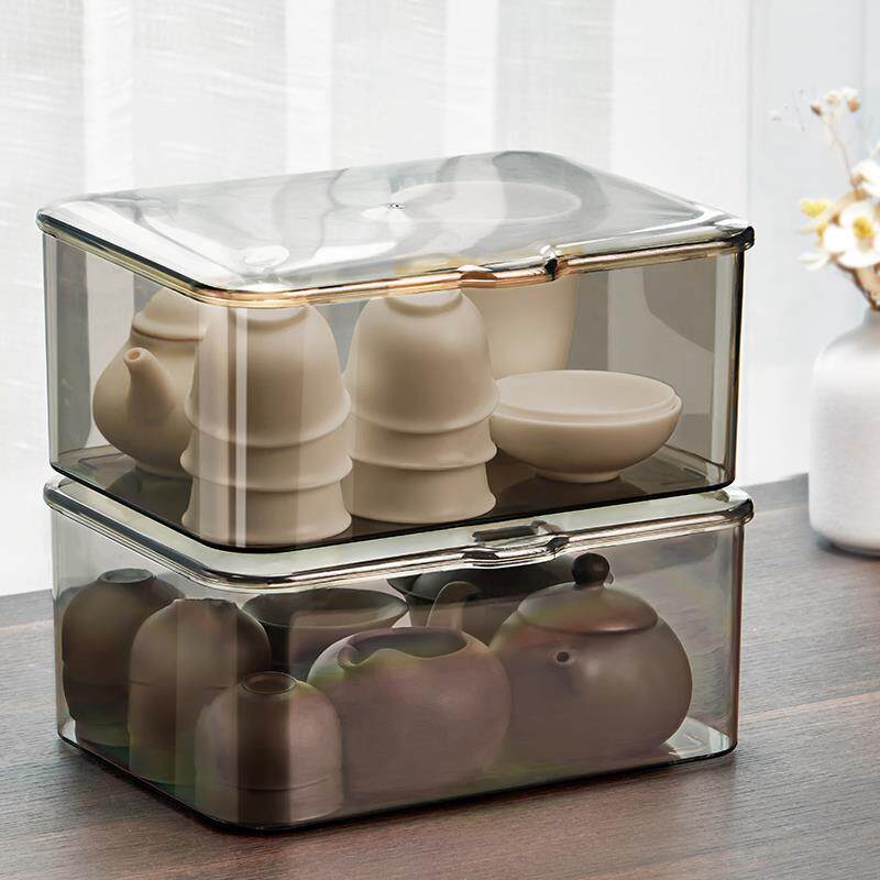 茶具收纳盒带盖防尘透明茶几桌面茶叶茶杯整理存放功夫茶壶置物架