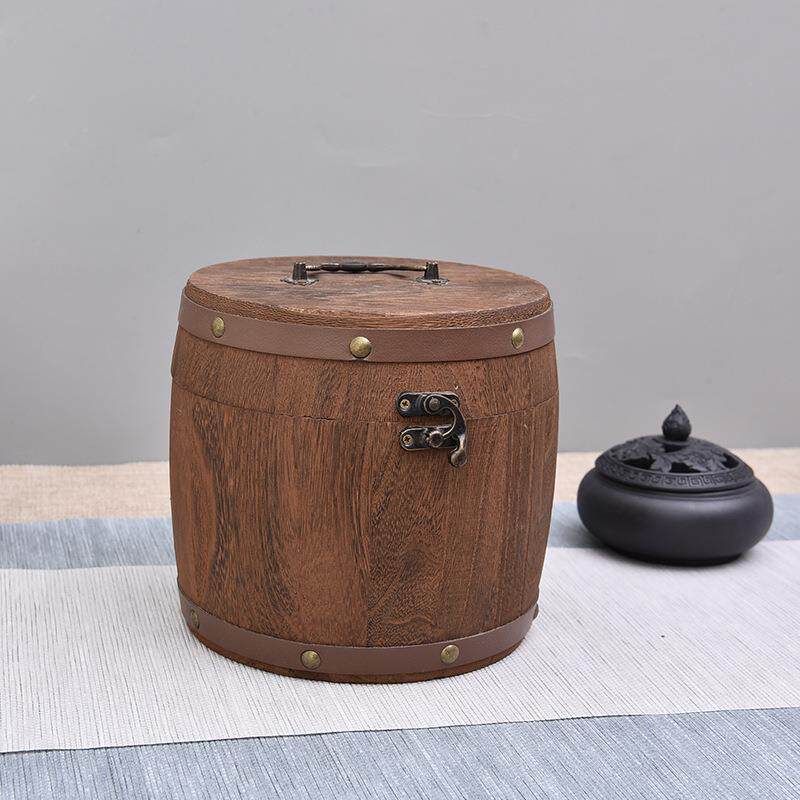 茶叶木桶带内袋茶饼收纳盒 实木茶叶木箱 木质圆桶茶叶木盒咖啡桶