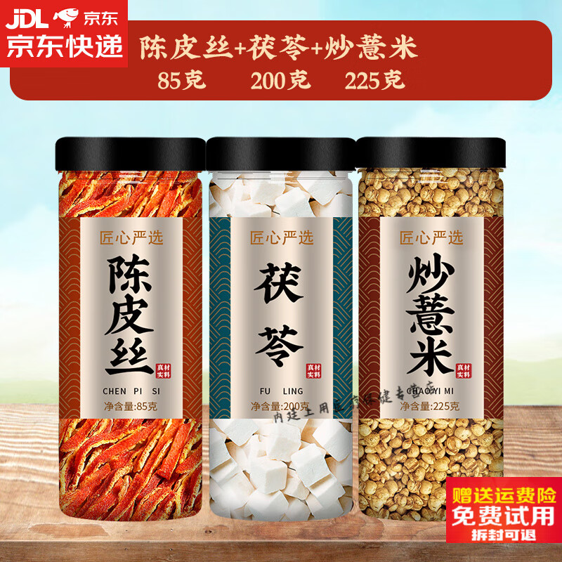 南京同仁堂陈皮茯苓炒薏米甘草祛湿茶薏仁中药材正品官方野生片泡水喝无杂质 【3罐】陈皮丝茯苓炒薏米