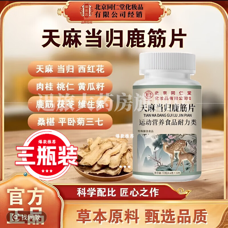 同仁堂北京同仁堂天麻当归鹿筋片丸关节不适草本植萃男女中老年腿 三瓶巩固装 120粒*3瓶