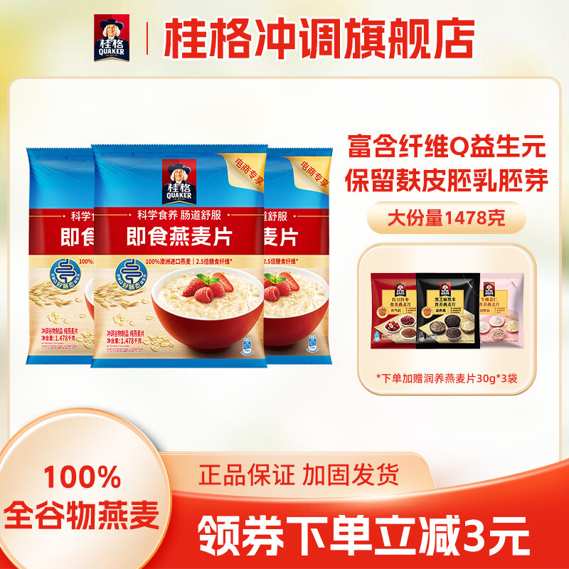 QUAKER 桂格营养早餐1478g膳食纤维即食燕麦片超值装 即食燕麦片1478g*3袋