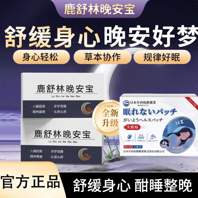 通用鹿舒林晚安宝氨基丁酸GABA酸枣仁辅助助眠舒压晚安片护理套装 【三盒巩固装】 12片*3盒