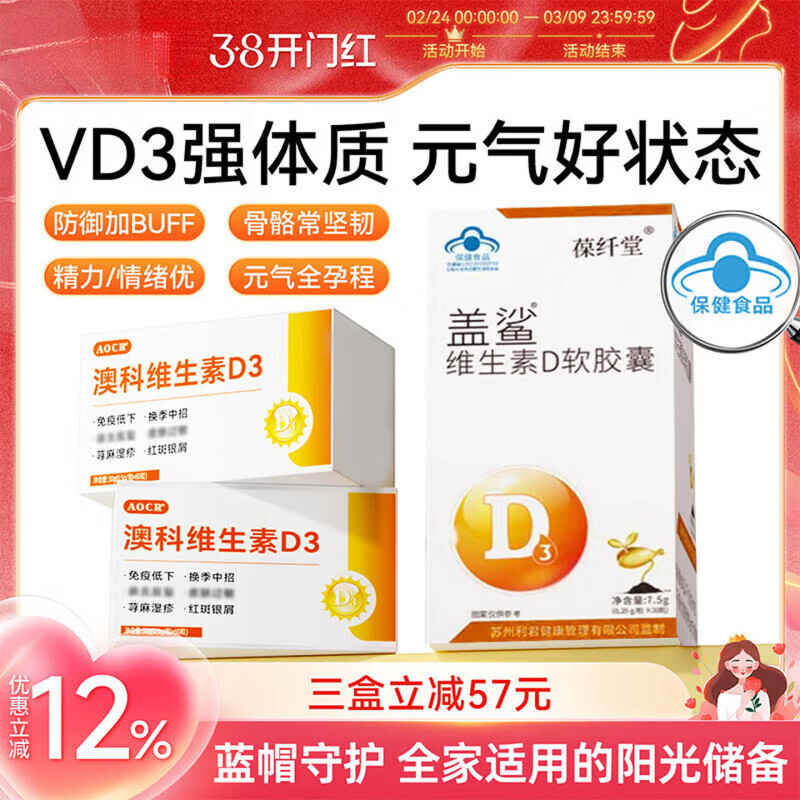 星鲨搭用奥科澳维生素D3提高免疫鼻塞鼻痒荨麻疹vd3软胶囊 体验装 30粒*1盒