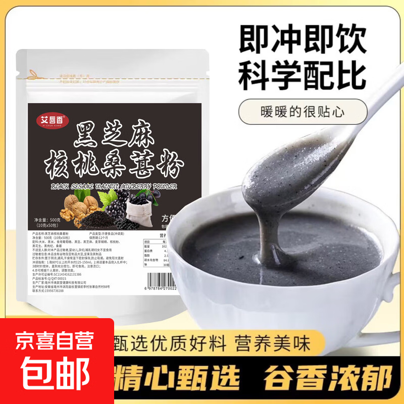 黑芝麻糊黑芝麻核桃黑豆桑葚粉五谷杂粮代餐早餐精选食材飘香醇香 黑芝麻核桃桑葚粉【3包*10g】