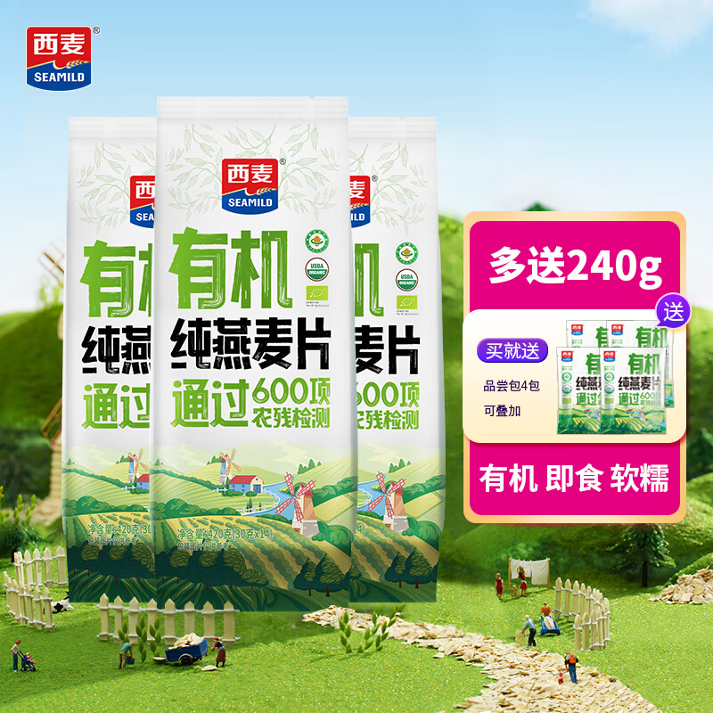 西麦有机燕麦片420g 即食冲饮高蛋白纤维谷物营养早餐 独立包装 420g*3袋