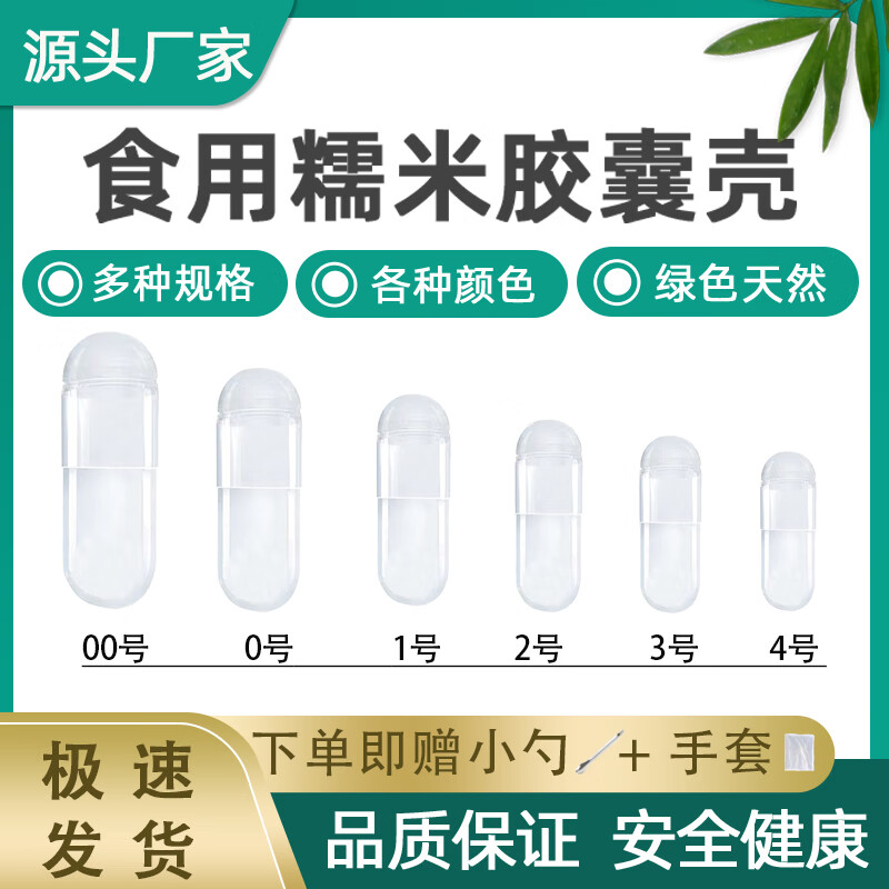 糯米胶囊壳食用装药器00号0号1号2号3号4号植物空囊大小号空胶囊 透明色 0号100粒合体【送勺+手套】