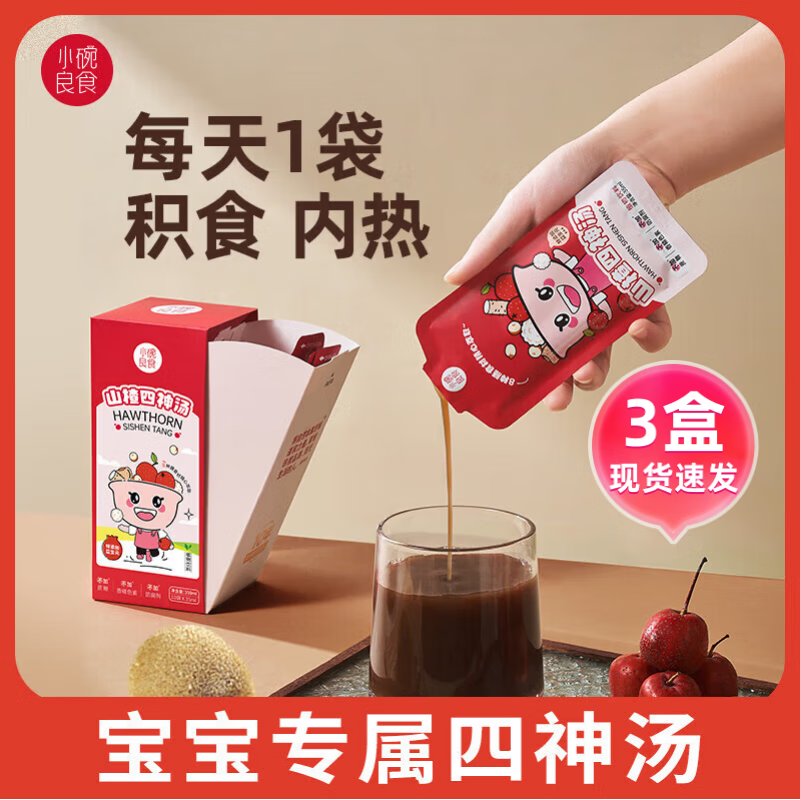 小碗良食山楂四神汤儿童宝宝专属四神汤山楂六物膏升级夏季直饮品银耳梨汁 山楂四神汤 3盒装(30袋)