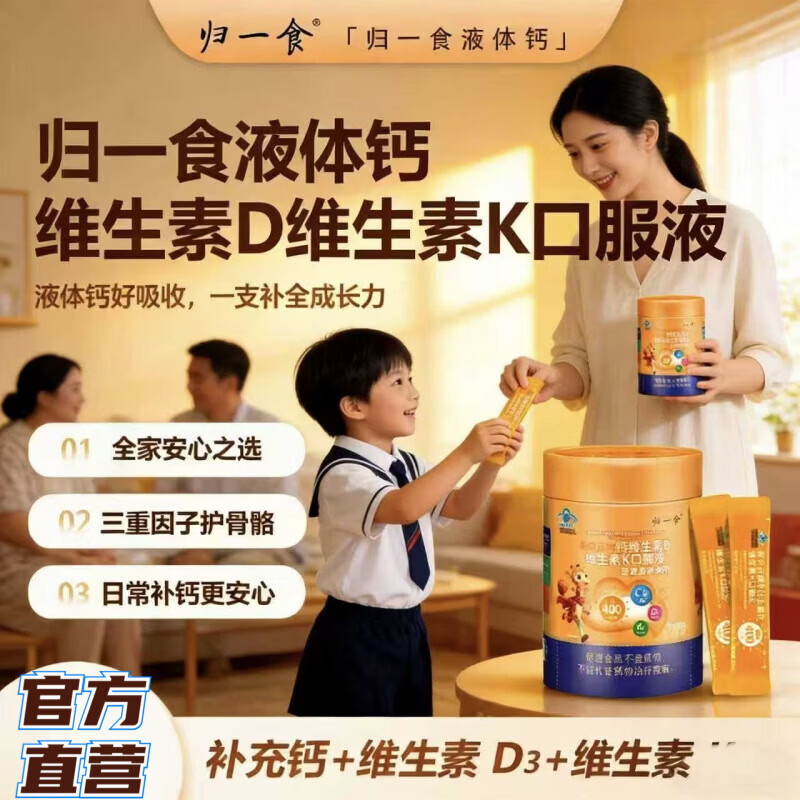 归一食液体钙高钙K2+D3促进生长发育孕妇儿童款400mg口服液甜橙味 归一食液体高钙 30条*1罐