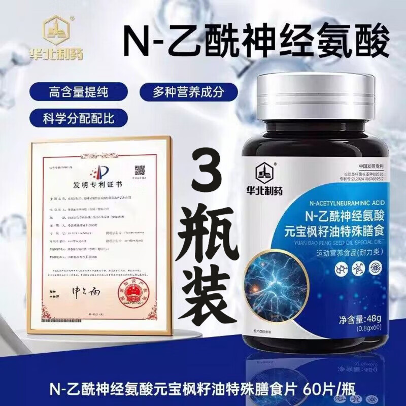 华北制药脑力素营养片N-乙酰神经氨酸元宝枫籽油呵护健康药房正品 【脑力素】 60粒*3瓶