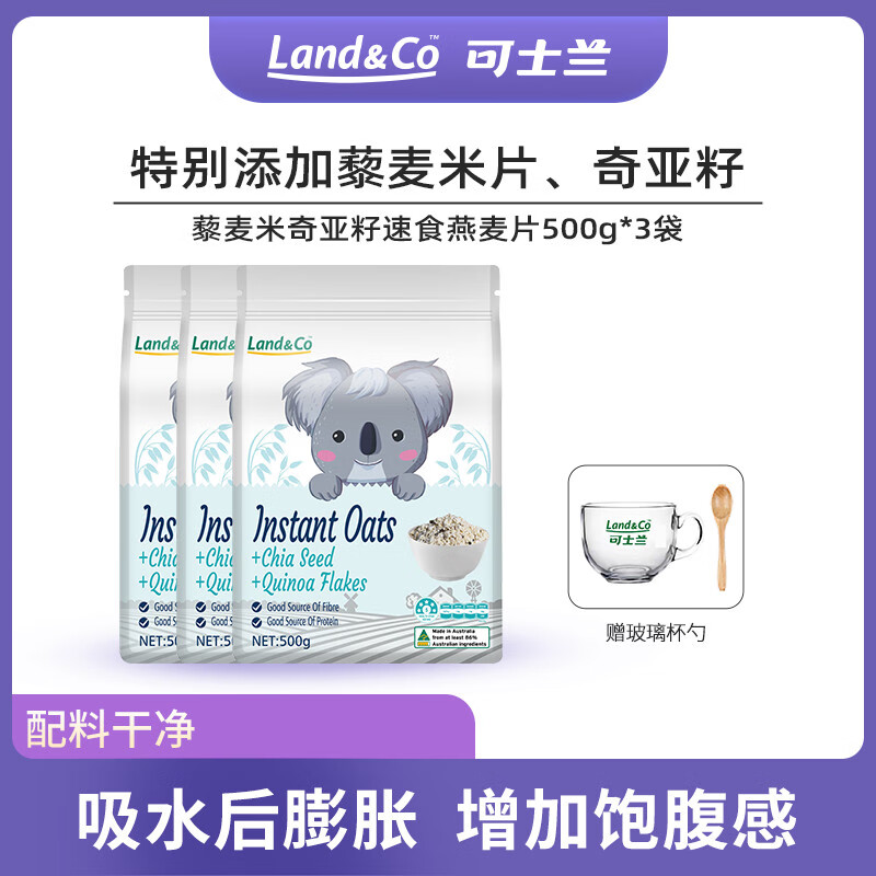 可士兰澳洲 可士兰 藜麦米奇亚籽速食燕麦片 奇亚籽500g*3袋送杯勺