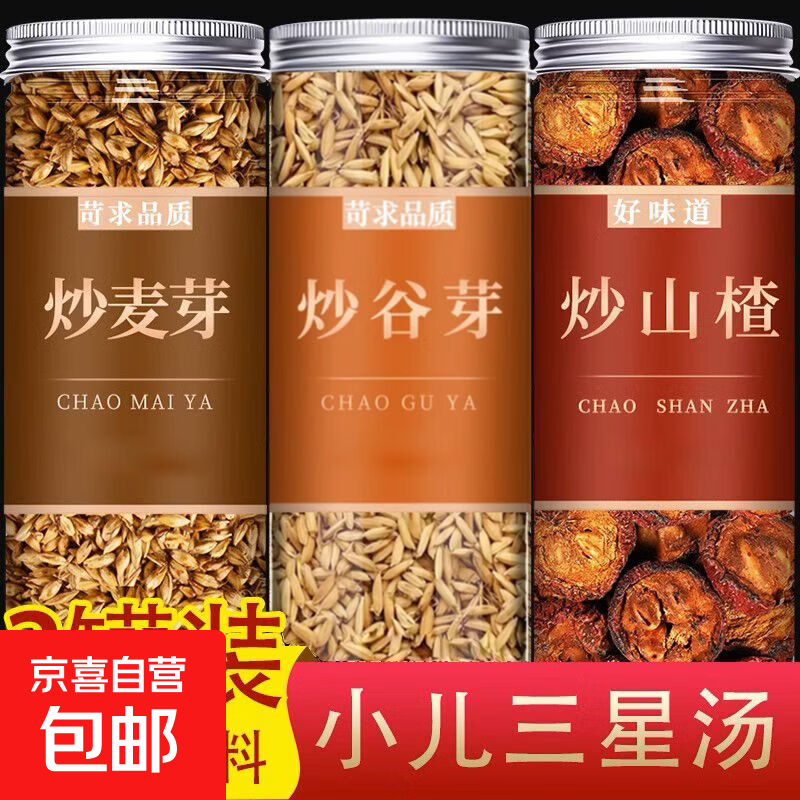 三星汤炒谷芽炒麦芽山楂儿童宝宝消积食组合养生煲汤原料 250g*3罐 炒麦芽+炒谷芽+炒山楂