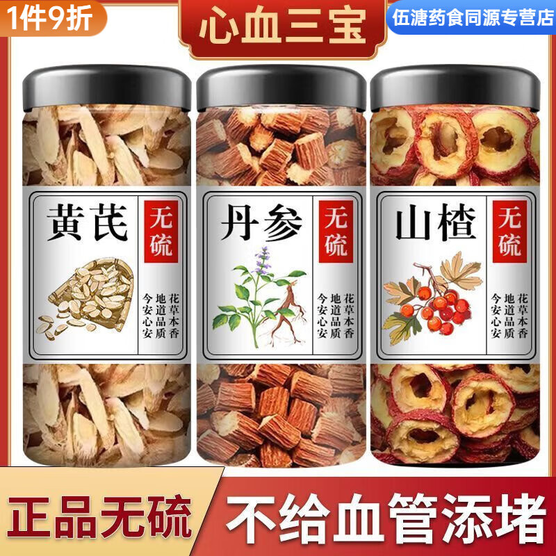 胖东来同款血管三通茶山楂丹参黄芪茶泡水喝干货紫丹参山楂干泡茶 【丹参+黄芪+山楂】血管清道夫*共3罐