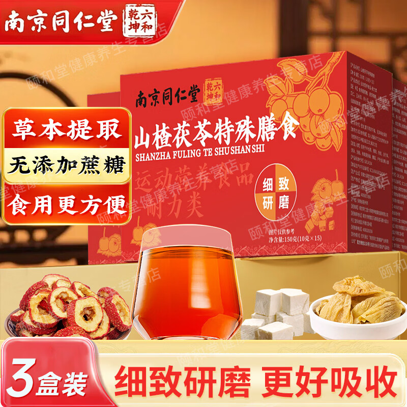 同仁堂 南京同仁堂山楂茯苓颗粒 0蔗糖 鸡内金粉可搭湿气重大肚子轻松茶 浮肿虚胖 15条*3盒