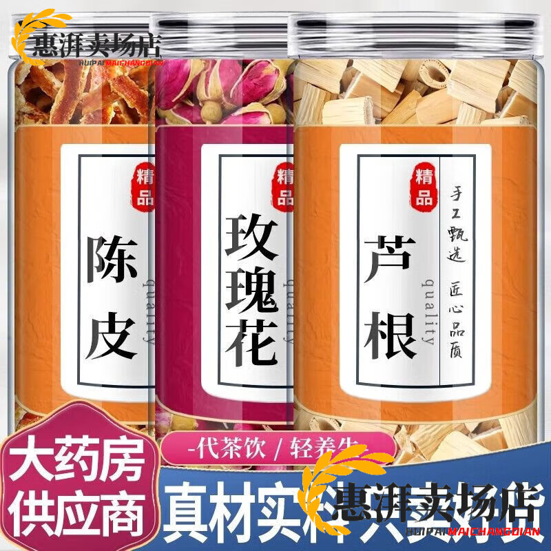 通用玫瑰花芦根陈皮组合茶包玖瑰花卢根桔皮泡水喝和 【共3罐130克】玫瑰陈皮芦根 130g*3罐