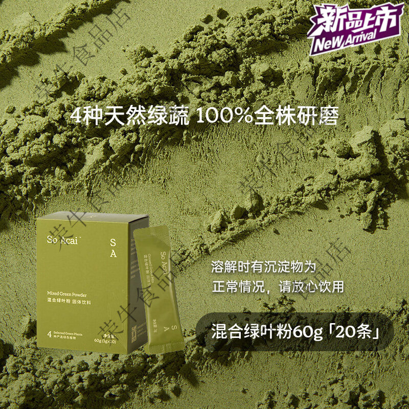 混合绿叶粉小绿粉蔬菜粉膳食纤维抹茶粉青汁粉纯羽衣甘粉正品保证 混合绿叶粉3g*20盒 60g