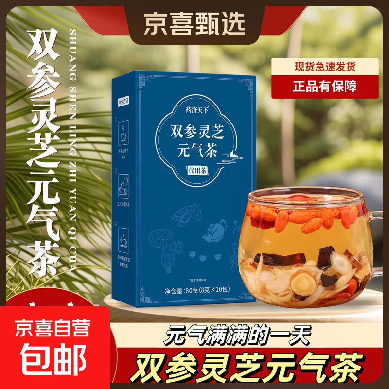 双参灵芝元气茶80克装黄芪党参西洋参独立茶包代用茶补气女补血 双参灵芝元气茶【3盒装】