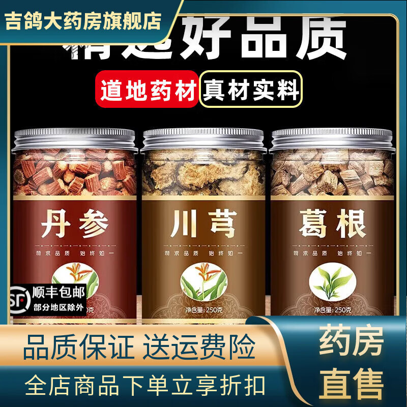 同仁堂乳香川芎丹参葛根正宗川芎茶中药药材仿代茶饮泡茶泡水喝 【3罐】丹参+川芎+葛根各125g