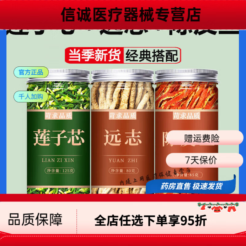 莲子心远志陈皮茶中药材野生特级无硫熏天然新鲜粉正宗芯 [3罐]莲子心远志陈皮丝