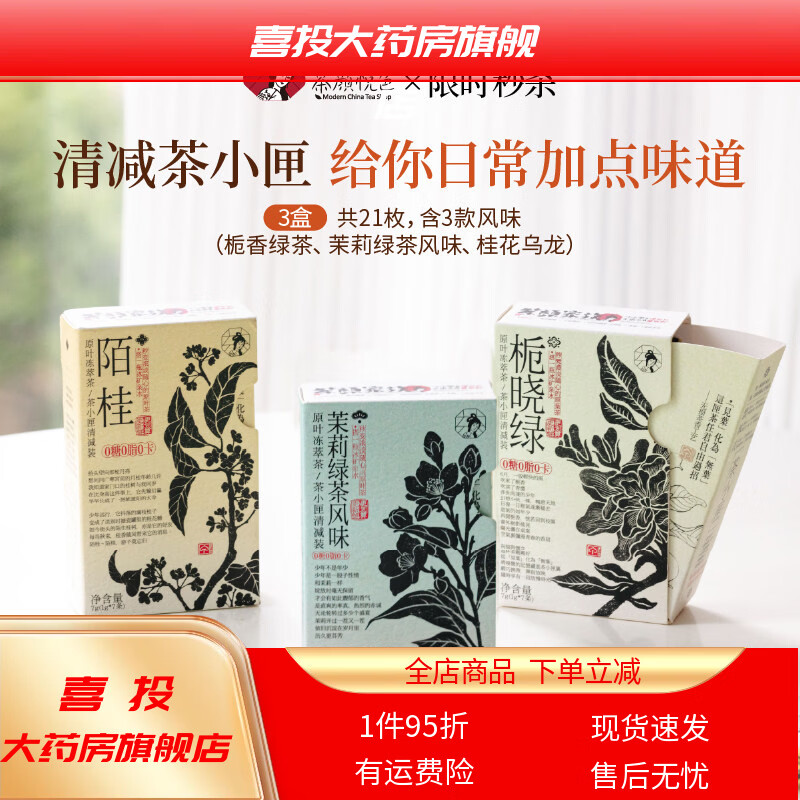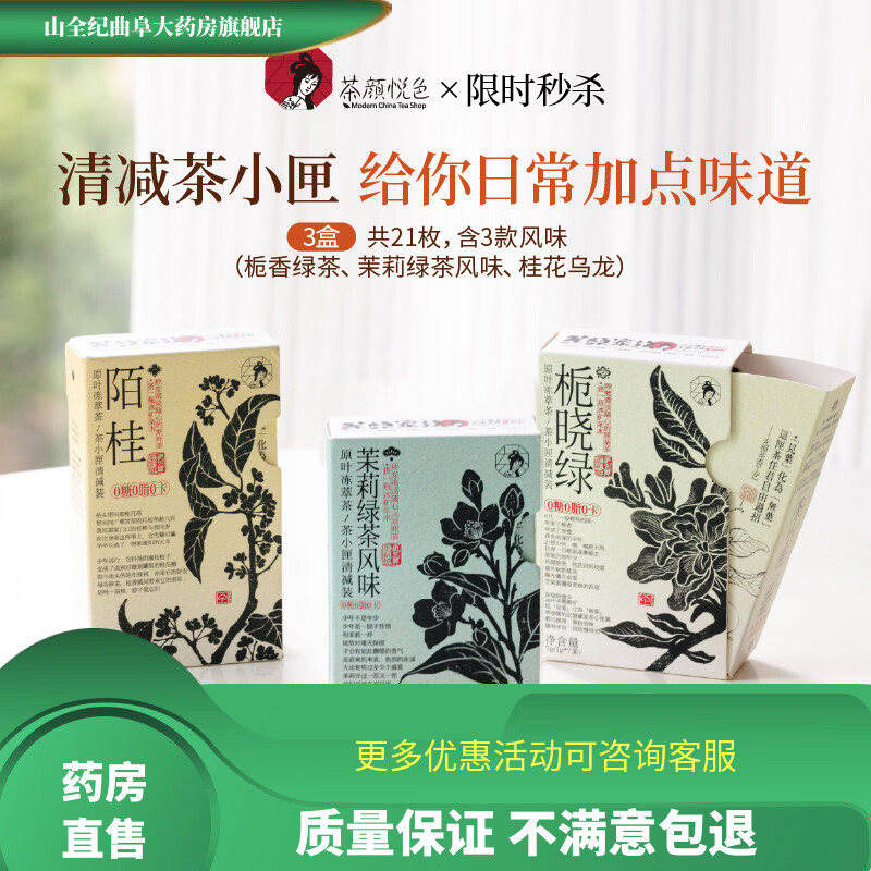 通用补气茶颜悦色茶小匣原叶冻萃茶粉栀香绿陌桂茉莉风味冲饮冷泡茶7g 栀香绿茶*1+茉莉绿*1+陌桂*1 7包*3盒
