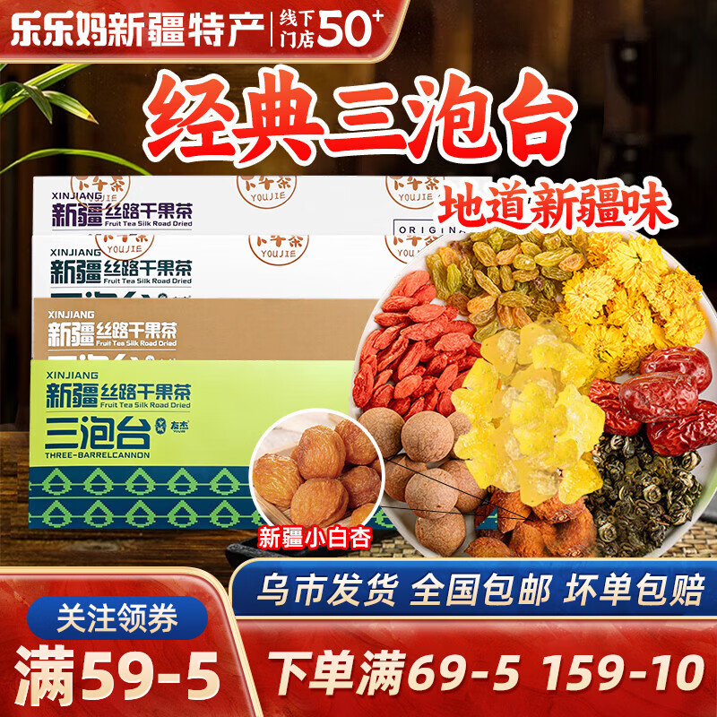 兮域【新疆特产】三炮台非兰州三泡台干果盖碗茶西北三泡台八宝茶玫瑰 【爱喝原味】原味400g*3盒