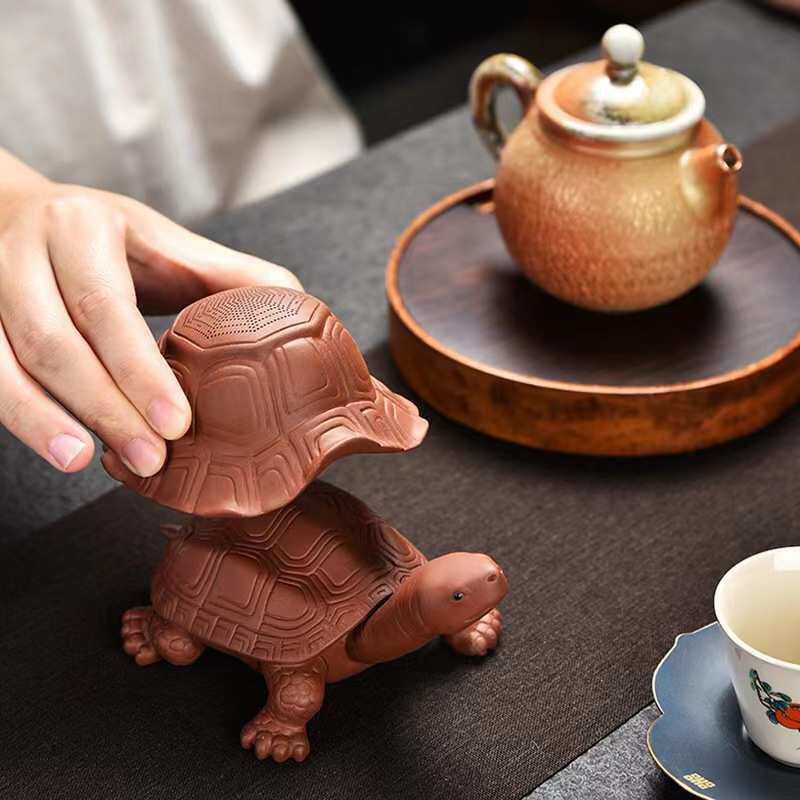 紫砂摆件长寿龟茶漏套装过滤摆件一体茶叶过滤器茶隔功夫茶道配件
