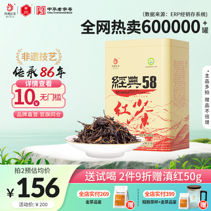 凤牌红茶2026年新茶滇红经典58正宗云南凤庆茶叶特级浓香380g口粮