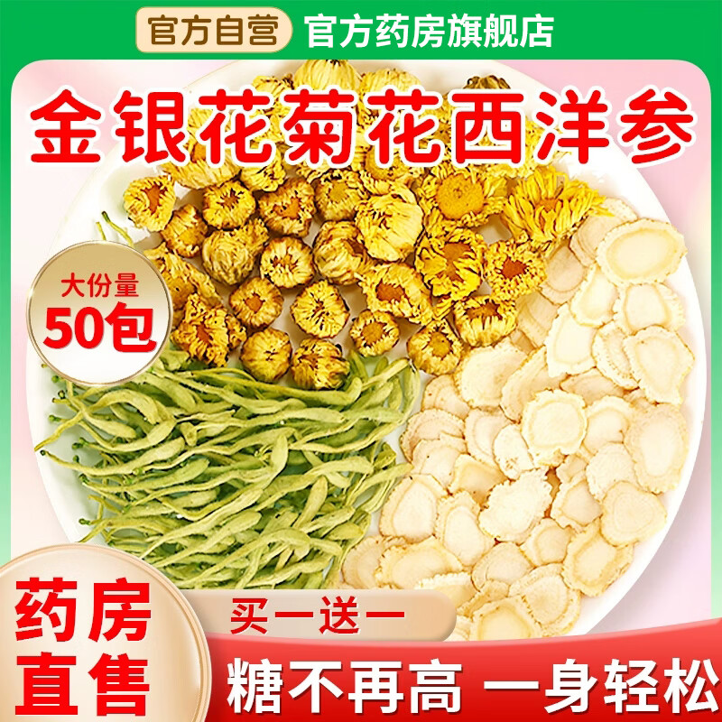 北京同仁堂金银花菊花西洋参组合茶中药材原料独立包装降胎菊3克辅助降血糖 名医30包装金银花菊花西洋参 京官方店东自旗舰营