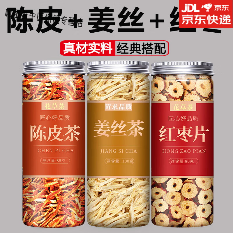 南京同仁堂姜枣茶陈皮姜丝红枣红糖正品三伏天汤祛湿去寒姜茶养生茶包 陈皮丝85g+姜丝100g+红枣片80g 3瓶*1组