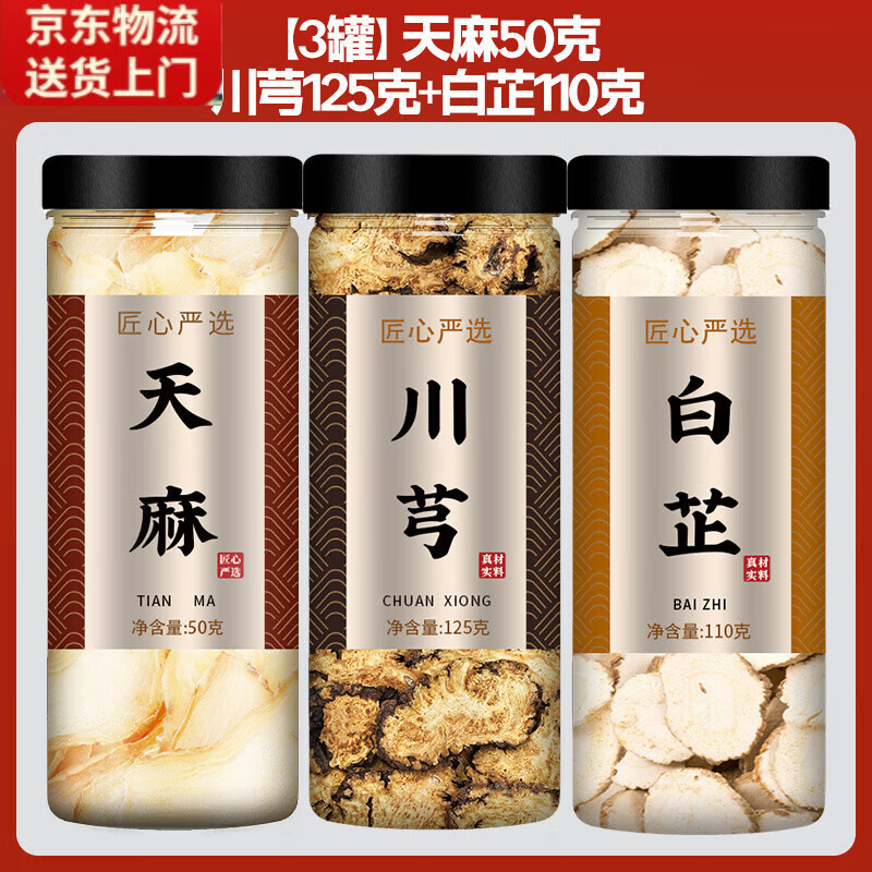 南京同仁堂天麻川芎茶中药材正品官方野生新鲜片500克的功效与作用 [3罐]天麻+川芎+白芷