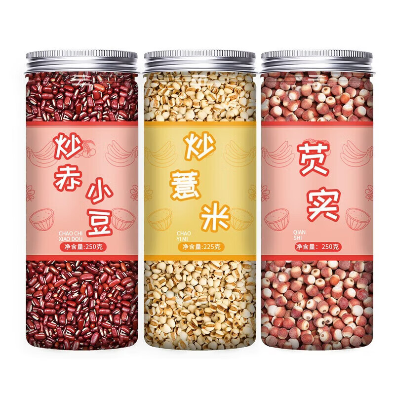 秦制薏米仁红豆茶炒熟新货薏仁米薏仁薏苡仁赤小豆小意米中药材 【3罐】炒赤小豆+炒薏米+芡实 1瓶*1罐