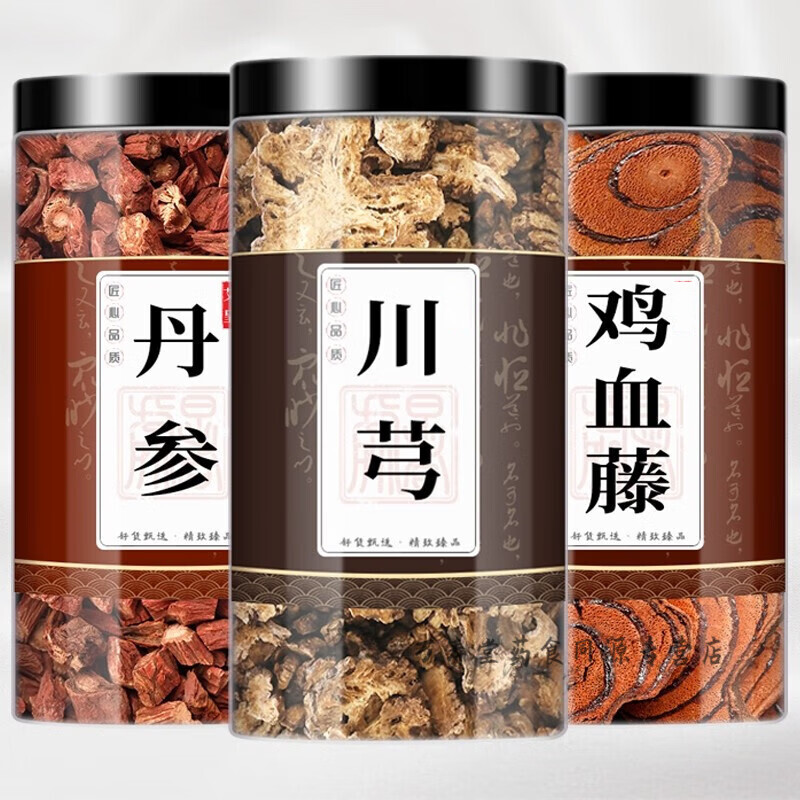 南京同仁堂丹参鸡血藤川穹中药材组合茶包丹叁川芎川弓片穷泡茶水喝甄选品质 【3罐】丹参鸡血藤川芎各 250g*1罐