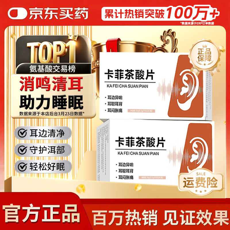通用卡菲茶酸片耳鸣 KAYF神经性损伤修复脑耳健康耳背蝉鸣声 三瓶周期装【中重度 86%顾客选择】 60片*3瓶