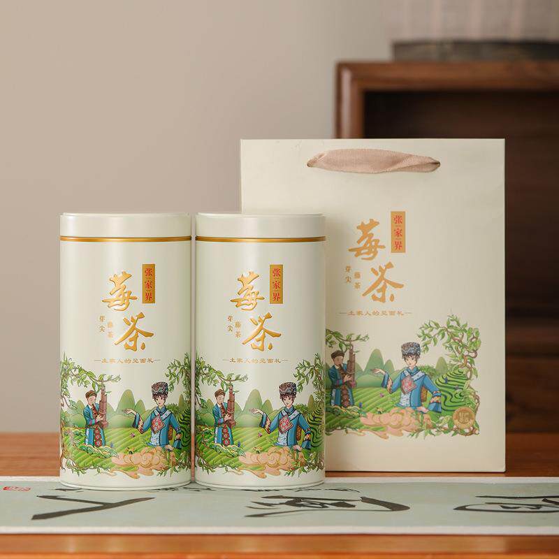 新款茶叶铁罐125-250克茶罐圆形密封恩施藤茶罐张家界莓茶包装罐