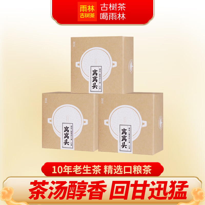 雨林古树茶茶叶云南古树普洱茶生茶 2016年窝窝头 10年老茶沱茶100g/盒 3盒装300g