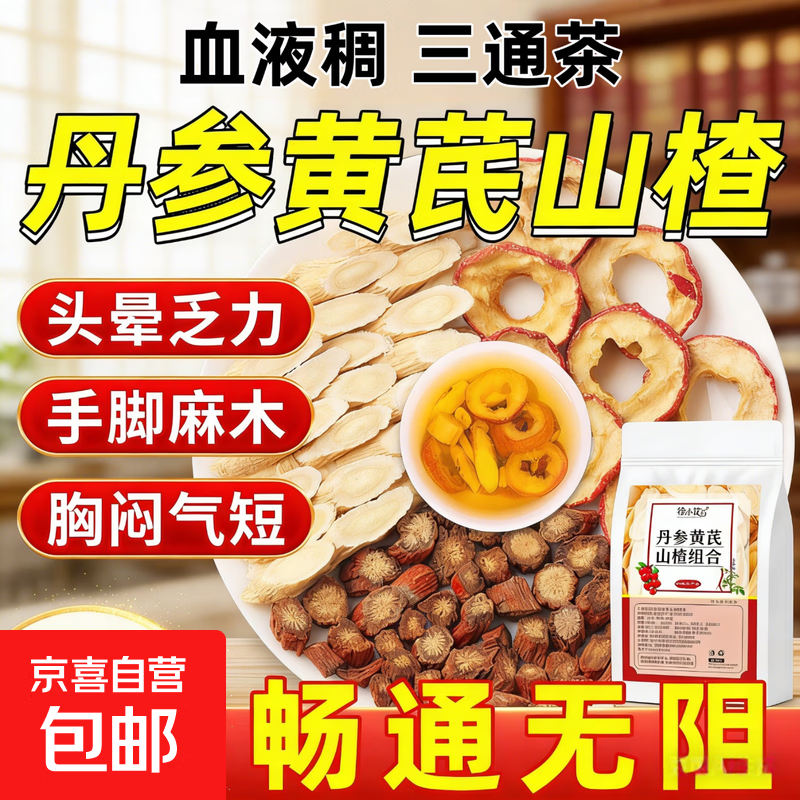 三通茶丹参黄芪山楂茶包袋泡茶独立包装养护心脑血管泡水喝 【三通茶丹参黄芪山楂10g*10包】 100g*3袋