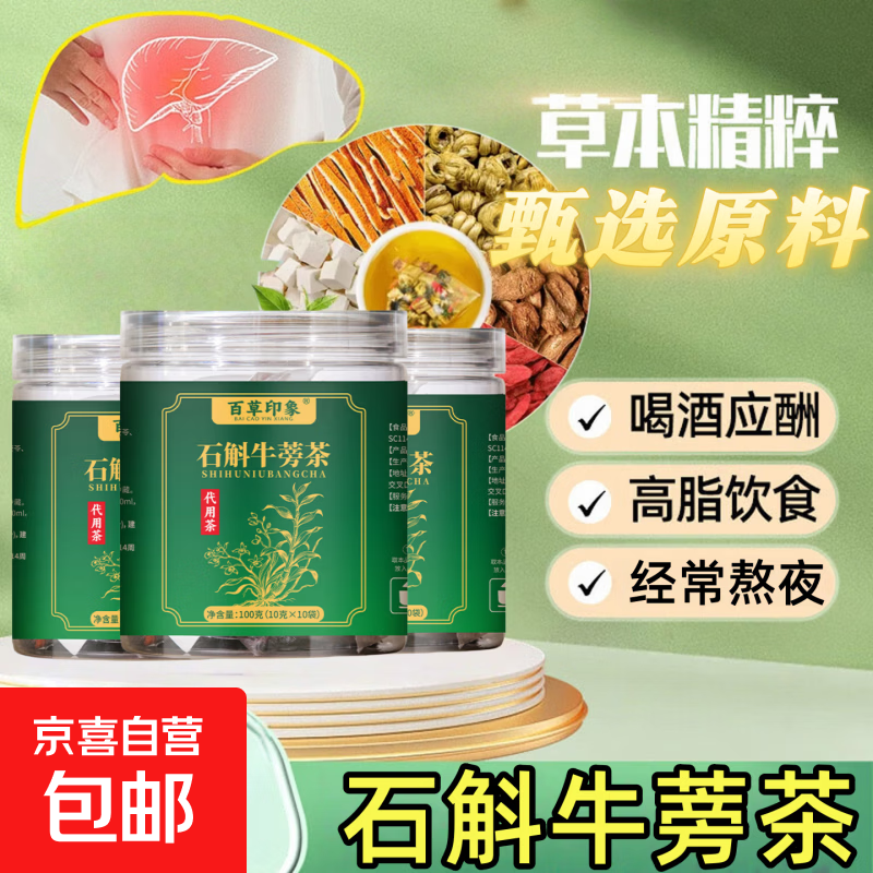 石斛牛蒡茶官方正品熬夜元气茶石斛菊花牛蒡枸杞独立免煮三角包 保障 100g*1瓶 3瓶