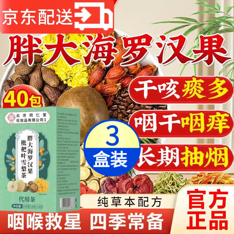 同仁堂【官方】胖大海罗汉果枇杷叶雪梨茶甘草熬煮慢性咽炎润喉护嗓 [3盒90%人选择]胖大海罗汉果枇杷 40袋*3盒