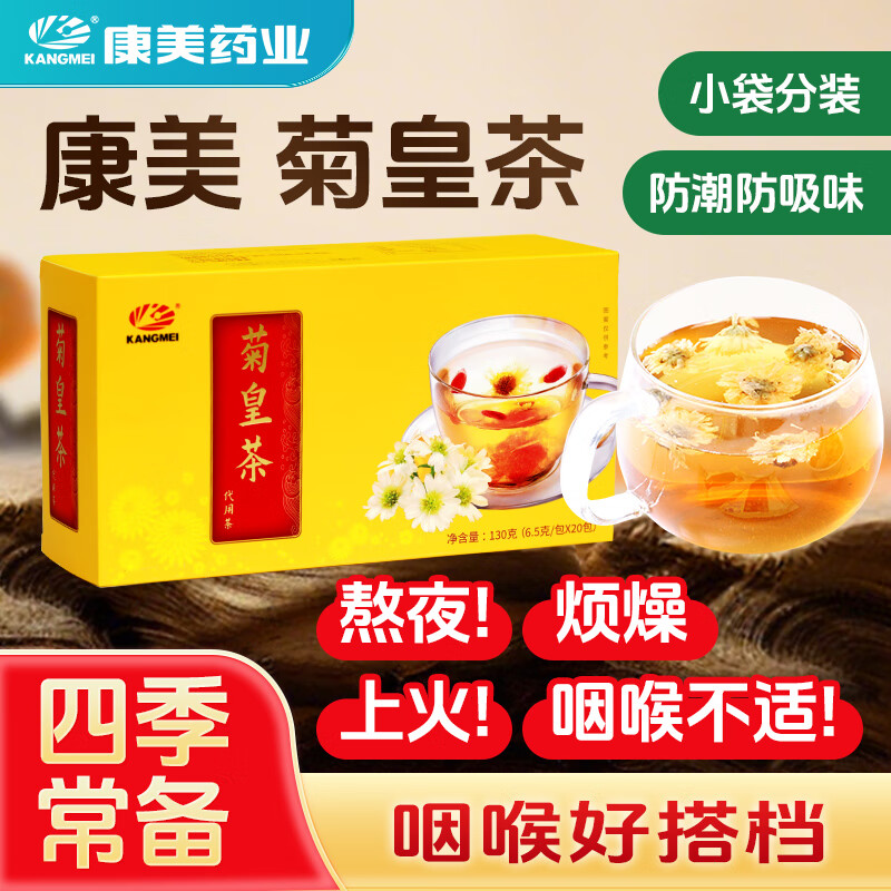 康美菊皇茶 年货礼品送礼 菊花枸杞子胖大海甘草陈皮组合袋泡茶泡水 6.5g*20包/盒*3盒装【爆款回归 重磅升级】