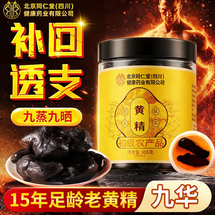 同仁堂朕皇即食九制黄精九蒸九晒黄精九华山滋补品熬夜养生茶泡酒 【老龄黄精 油亮肉厚】 105g*3罐