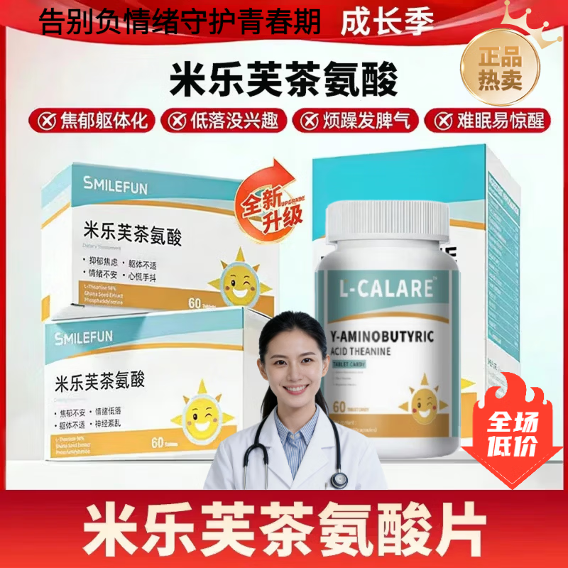 通用米乐芙茶氨酸片助眠舒压缓解情绪稳定调理重启快保正 【周期装】横扫失眠 60粒*3瓶 【严选直售 京质保障】