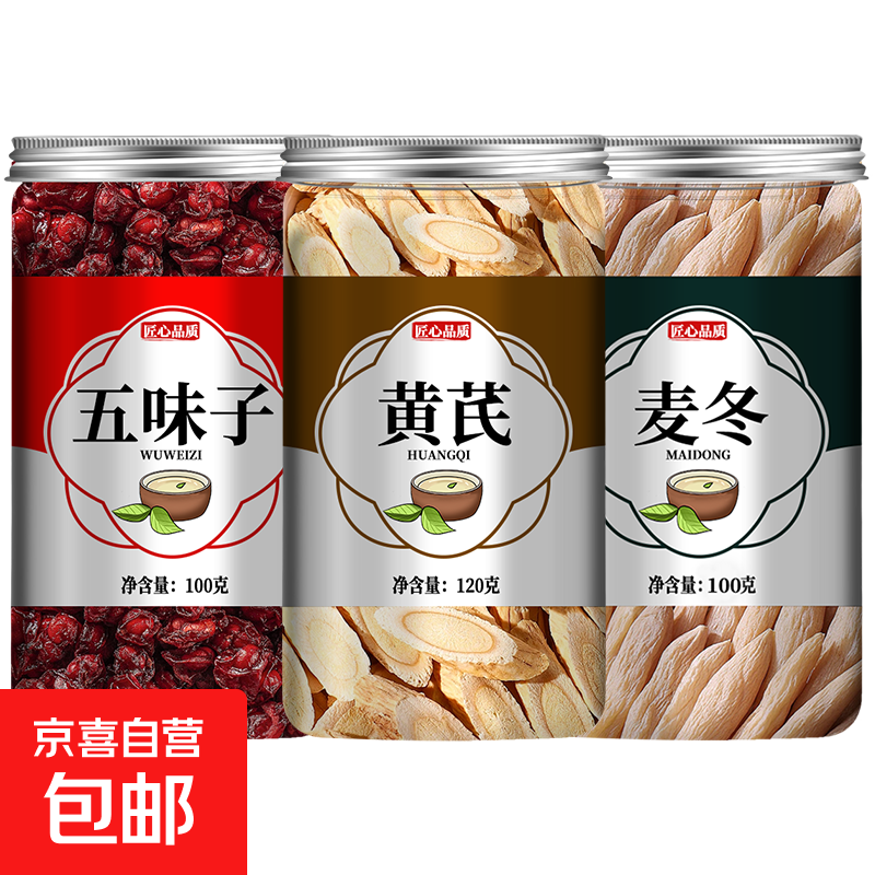 【送货上门】中药材罐装黄芪麦冬五味子茶组合袋泡茶泡水喝煲汤 【3罐】黄芪120g麦冬100g五味子110g
