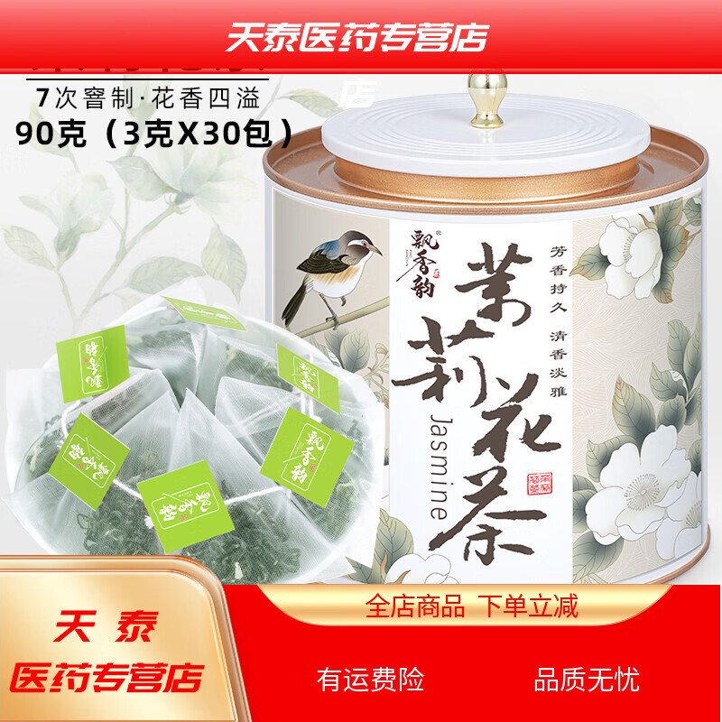 通用补气飘香韵茉莉花茶茶包浓香型横县茉莉绿茶新茶叶独立小包装袋冷 (量贩装-3gx30包) 3g*30包