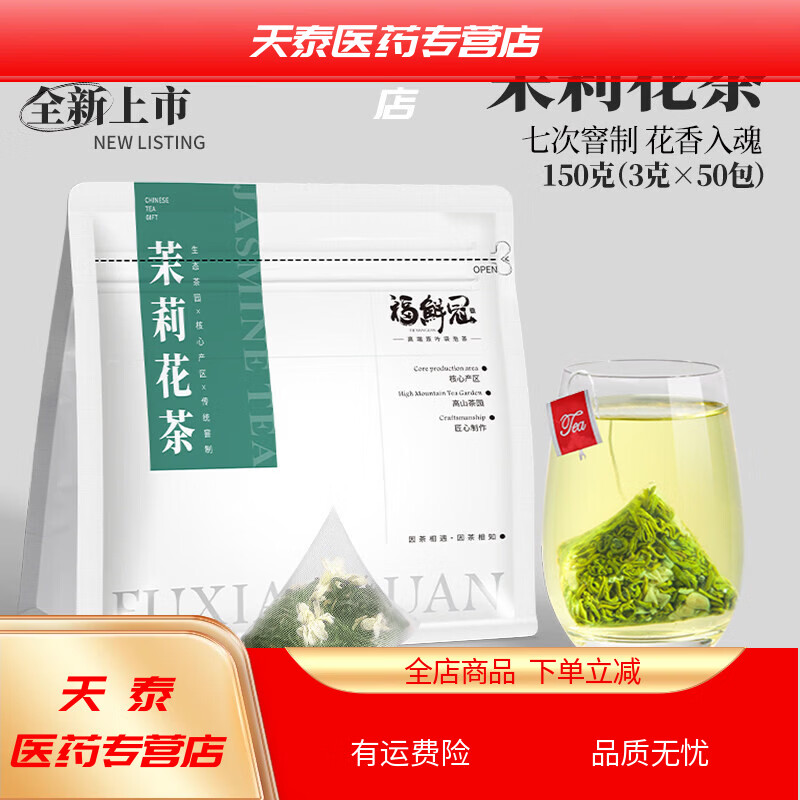 通用补气茉莉花茶茶包50包浓香型茶叶横县茉莉绿茶冷泡茶袋泡茶叶袋装 小包茉莉花茶 3g*50罐