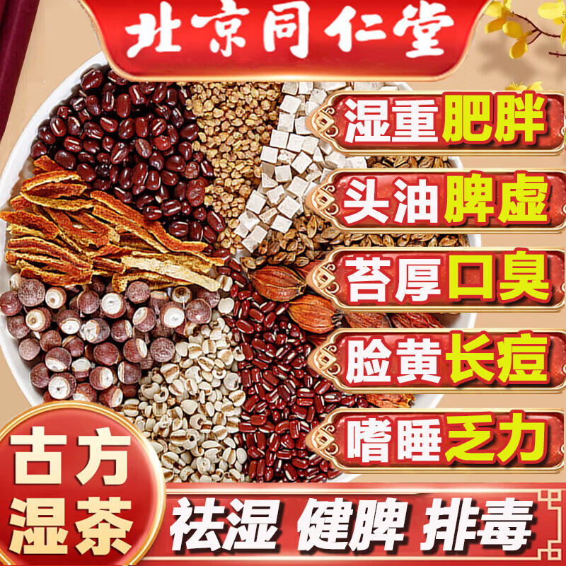 同仁堂红豆薏米茶祛湿茶除湿气重去湿气茶芡实茯苓橘皮健脾排湿养生茶包 3盒装【周期疗程装】 30袋*3盒