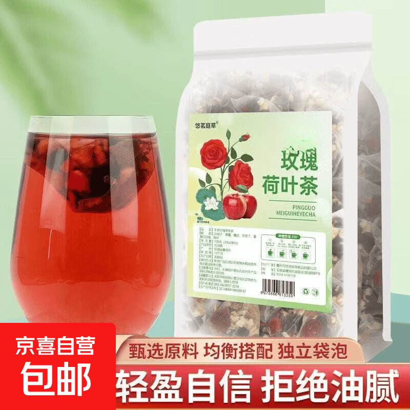 苹果玫瑰荷叶茶美容养颜刮刮茶袋装免煮茶包养生茶真材实料 苹果玫瑰荷叶茶 3袋 * 20包