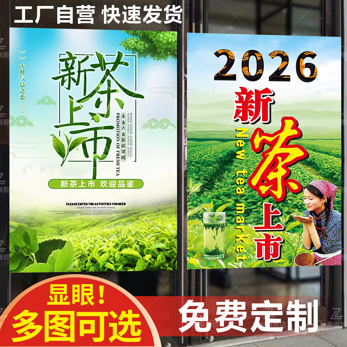 茶叶店广告牌玻璃门贴纸2026年新茶上市海报茶行橱窗宣传静电贴QT