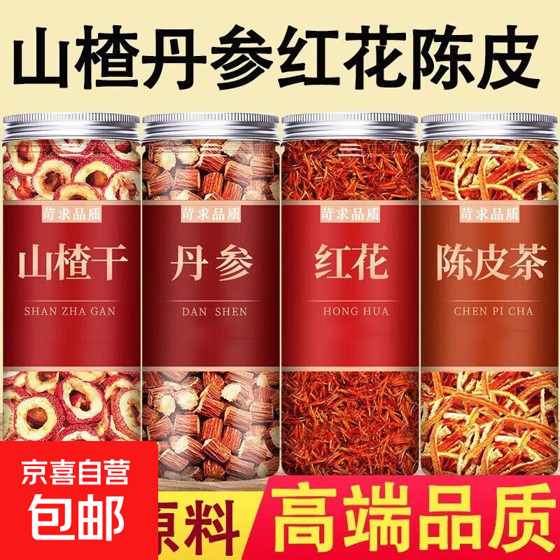 山楂丹参红花陈皮茶组合茶包泡茶泡水养生去核山楂老陈皮煮水喝 100g*3罐 山楂+陈皮+红花