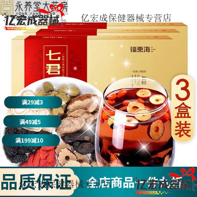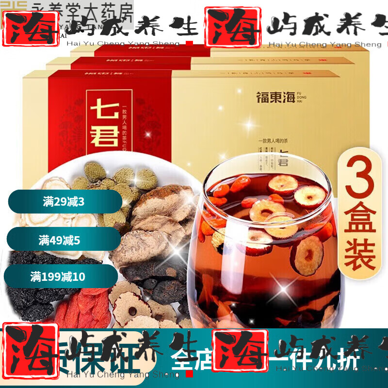 福东海 七君茶人参黄精五宝茶八宝茶玛咖黄精桑葚干人参覆盆子枸 七君茶(经典金盒)装 1mg*3盒