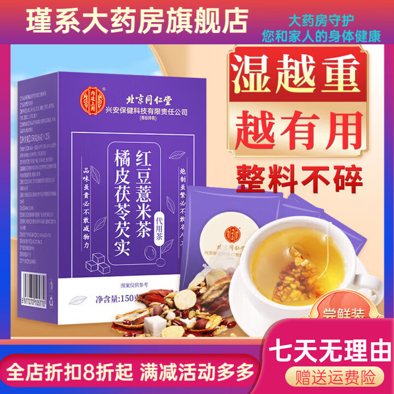 同仁堂赤小红豆薏米去祛排湿气茶芡实茯苓茶除湿寒气毒养生茶 【6盒 巩 【1盒尝鲜装】养生建议3盒起(真材实料)